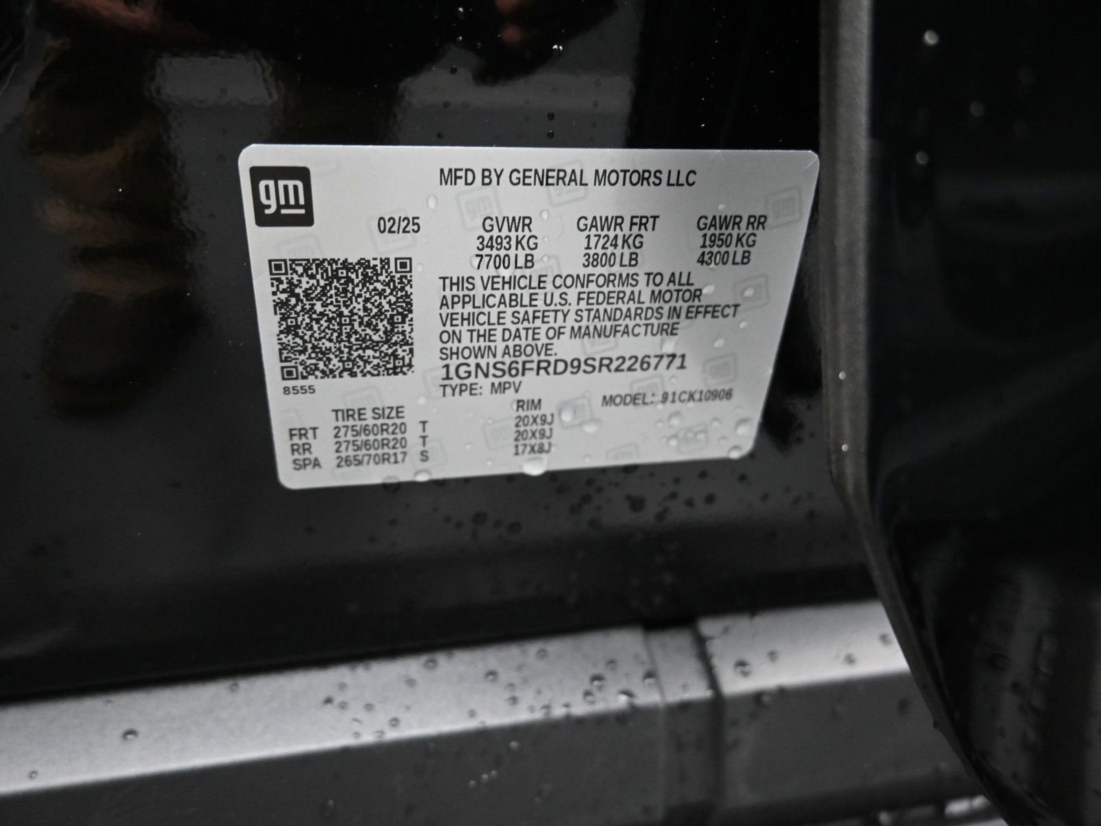 - Tires, 275/60R20SL all-season, blackwall