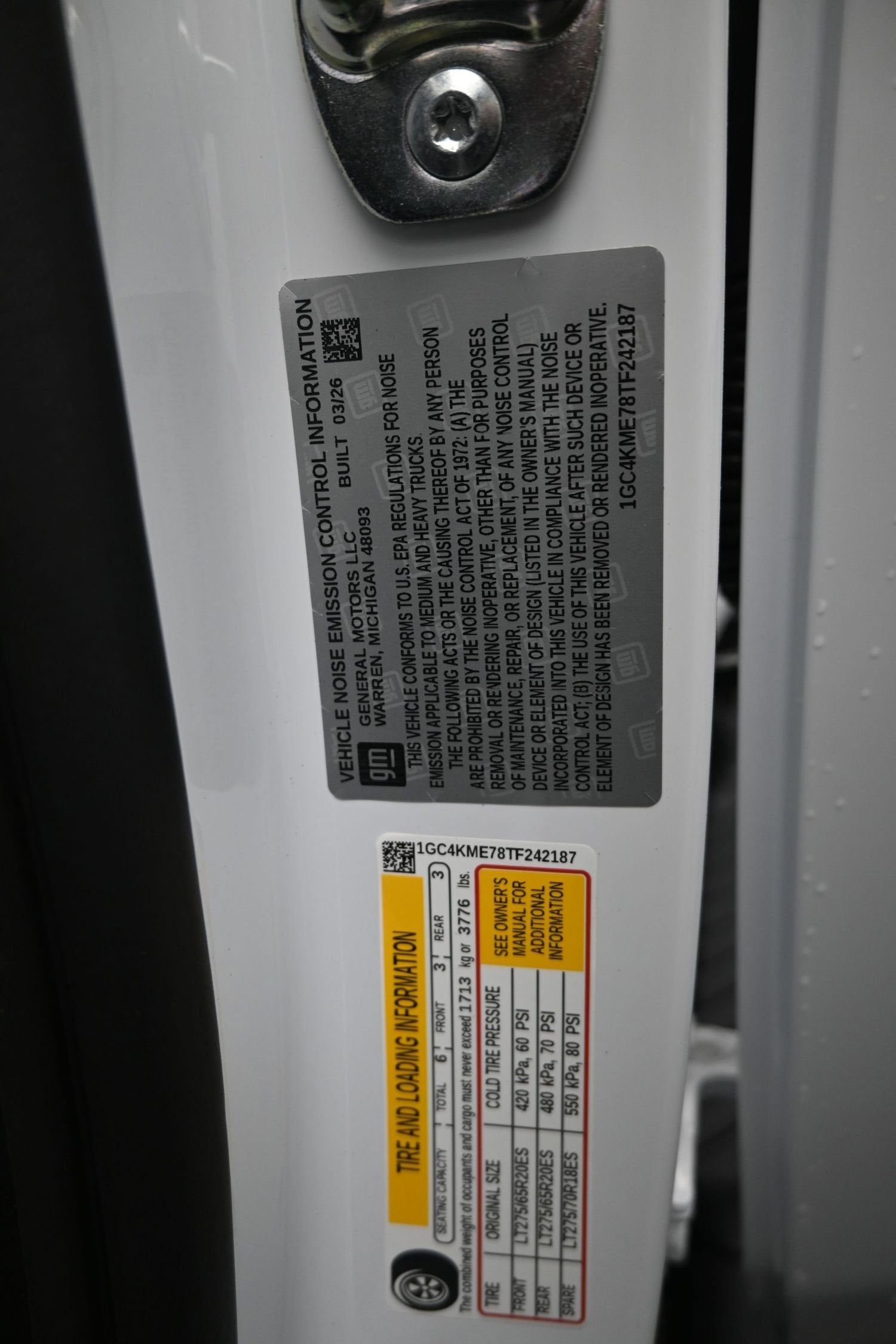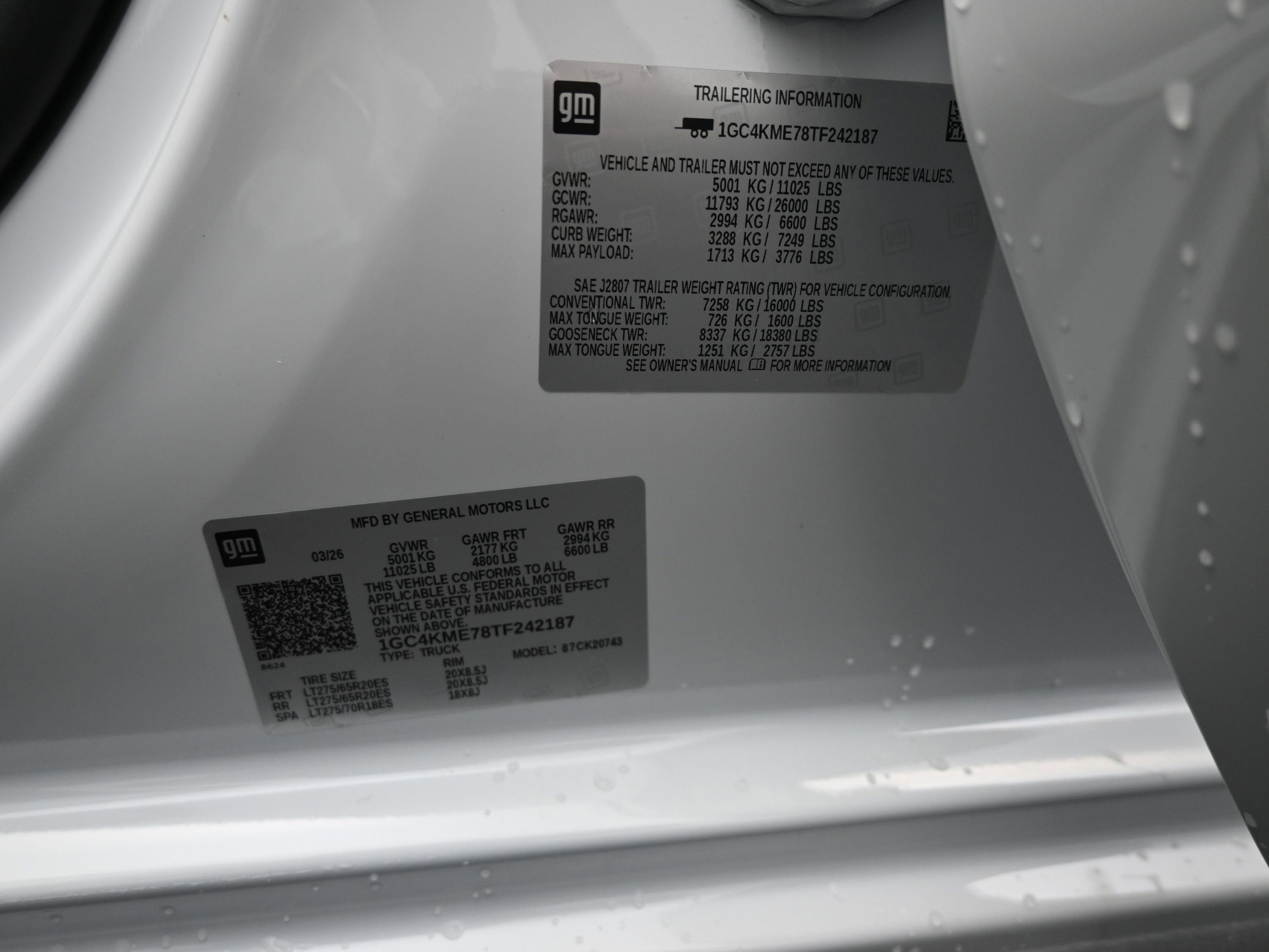 - Tires, LT275/65R20 all-terrain, blackwall