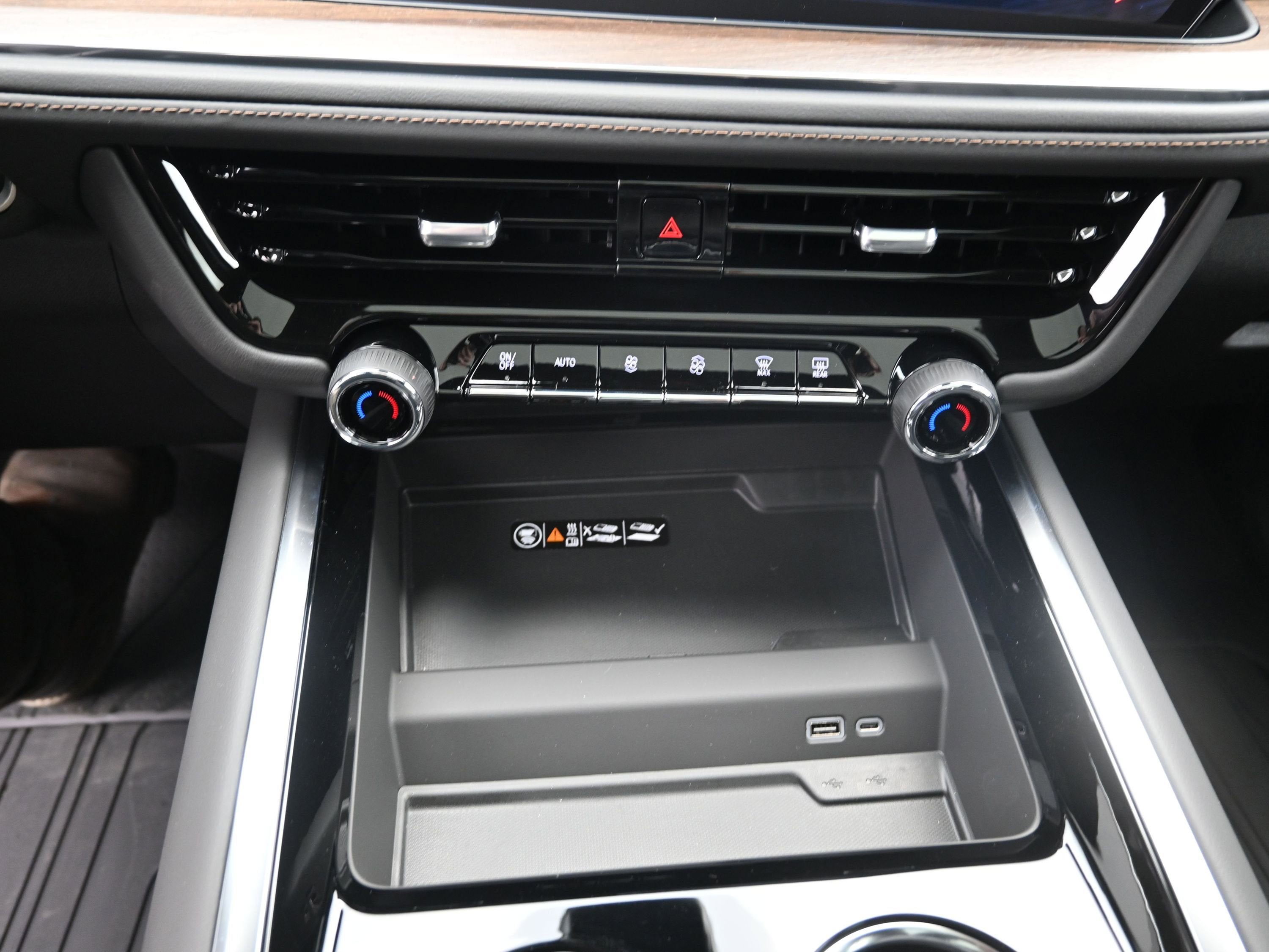 - USB ports, 2 type-A and C, charge and data, located on front console