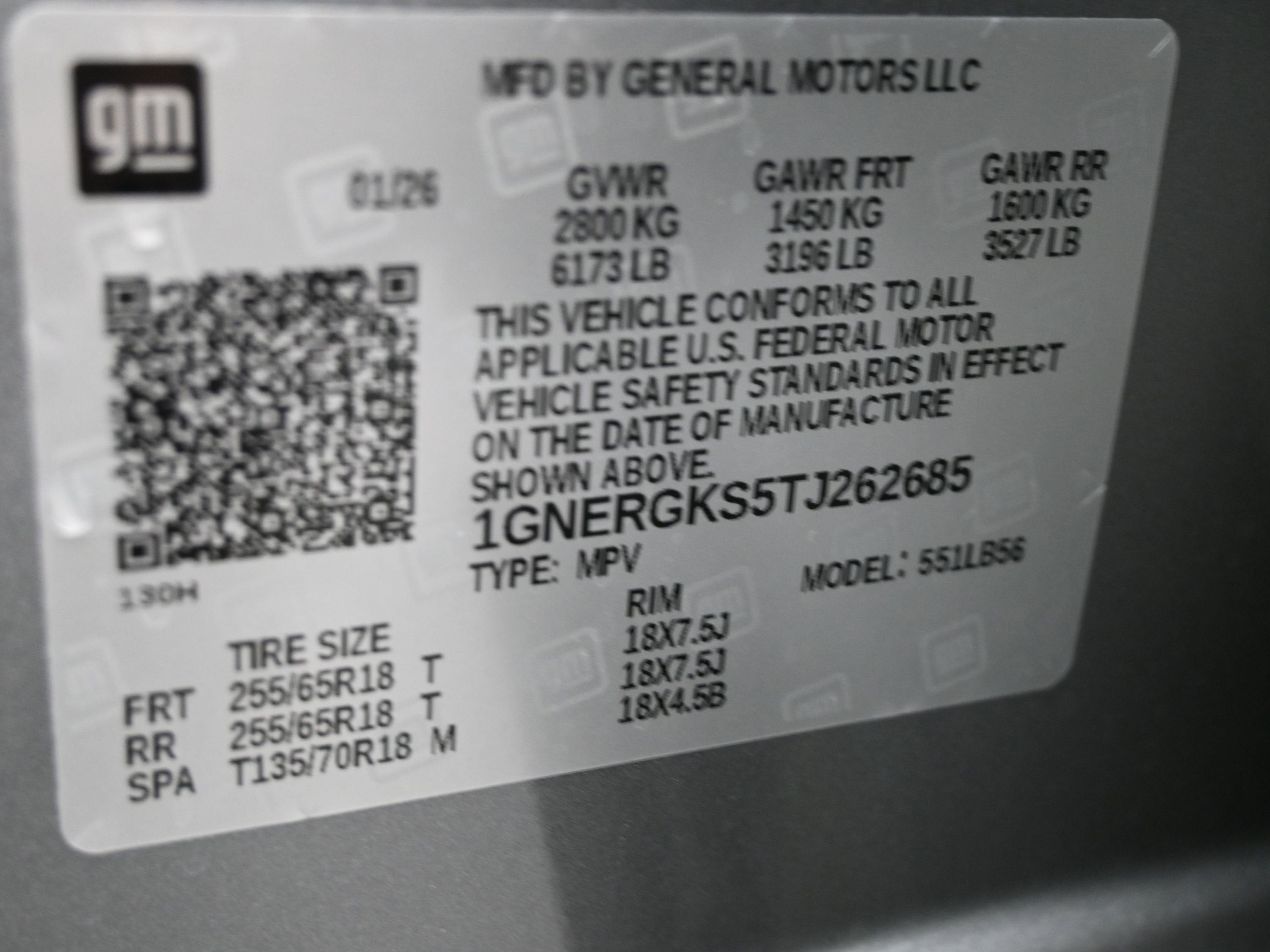 DRIVER CONFIDENCE PACKAGE , TIRES, 255/65R18 ALL-SEASON BLACKWALL, STERLING GRAY METALLIC, SEATS, FRONT BUCKET, SEATING, 7-PASSENGER (2-2-3 SEATING CONFIGURATION), REAR PEDESTRIAN ALERT, REAR CAMERA MIRROR, POWER OUTLET, 120-VOLT, LOCATED ON THE REAR OF CENTER CONSOLE, LT PREFERRED EQUIPMENT GROUP, LT JET BLACK, EVOTEX SEAT TRIM.
