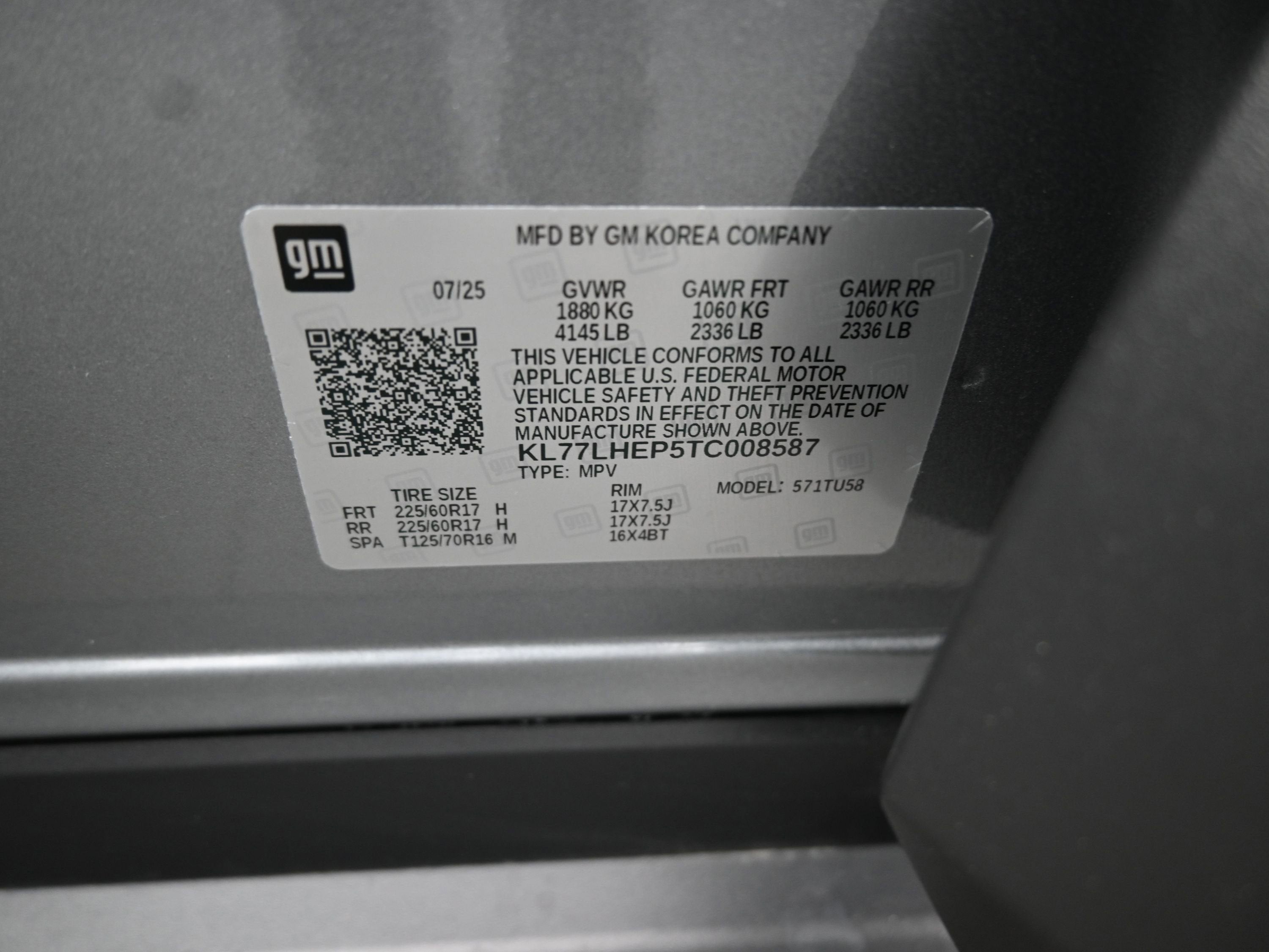 - Tires, 225/60R17 all-season, blackwall
