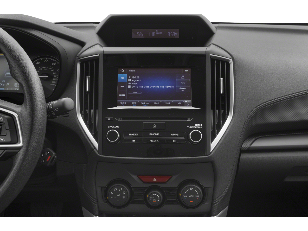 - Radio: Subaru Starlink 6.5" Multimedia Plus System -inc: AM/FM stereo HD Radio w/single-disc CD player w/MP3/WMA/CRR/RW file capability, multi-touch gesture high resolution display, 6.5" LCD screen, Bluetooth® audio streaming connectivity and hands-free phone connectivity, iPod control capability, rear-vision camera display, SiriusXM All Access radio and Travel Link (subscription required), smartphone integration: AHA, Android Auto, CarPlay and Pandora, Starlink cloud applications: refer to subaru.com for app availability, dual USB port, 3.5mm auxiliary input jack, 4 speakers and body color roof mounted antenna