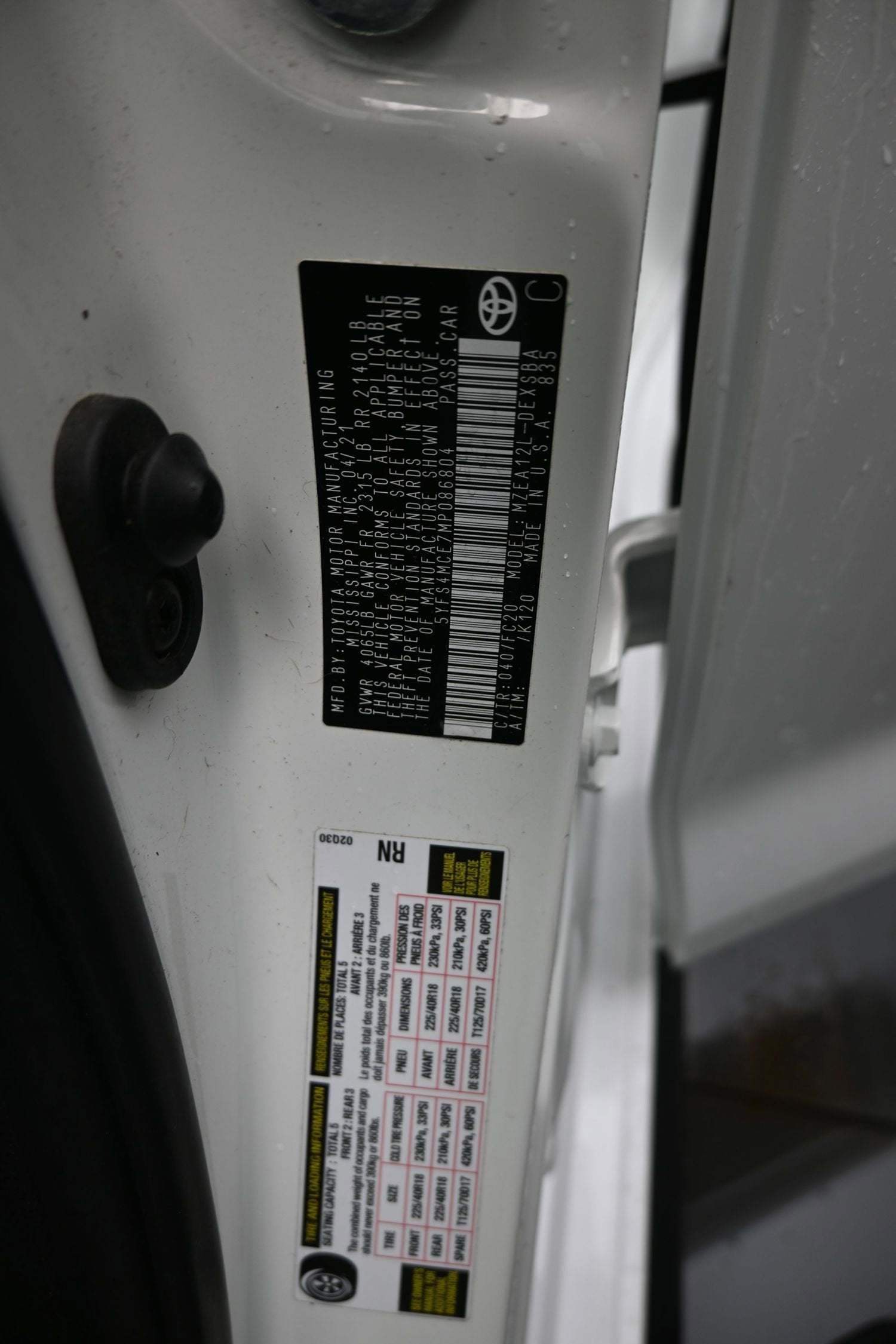 - Tires: P225/40R18 All-Season