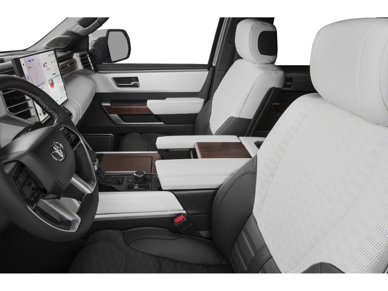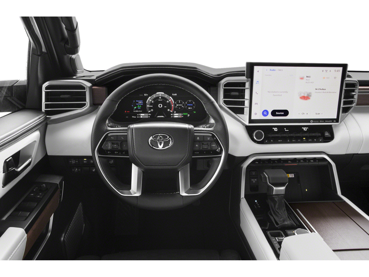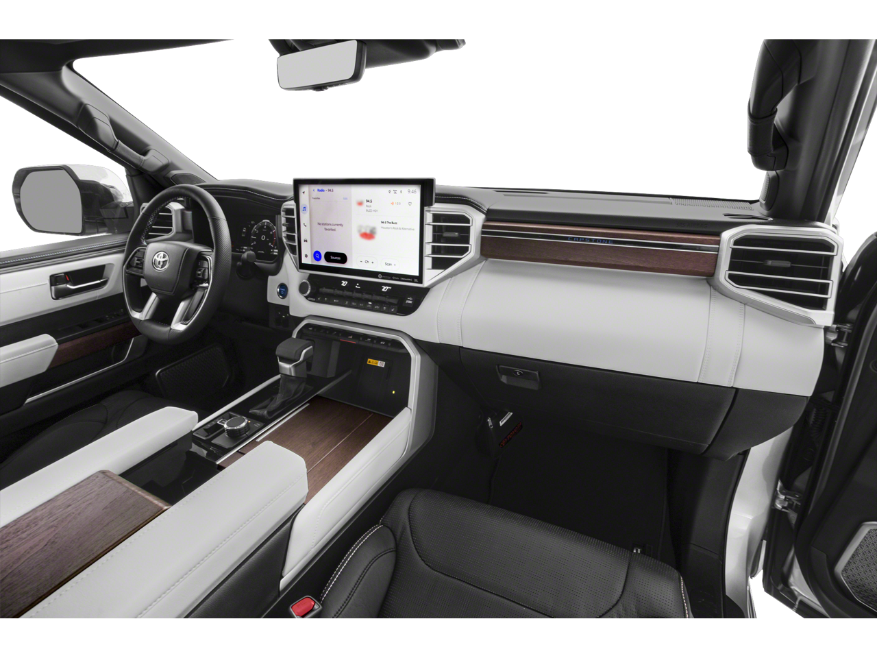Step inside the Tundra Capstone Hybrid and experience a new level of comfort and refinement. Sink into the luxurious Leather Seats, and find your perfect driving position with the Power Driver Seat and Power Passenger Seat. Enjoy personalized comfort with Driver Adjustable Lumbar and Passenger Adjustable Lumbar support. The Heated Front Seat(s) and Cooled Front Seat(s) ensure you stay comfortable no matter the weather, while the Heated Steering Wheel provides warmth on chilly mornings. The Climate Control system maintains the perfect cabin temperature for everyone. The Power Folding Mirrors add convenience in tight spaces, and the Power Retractable Running Boards make getting in and out effortless. Enjoy the added touch of luxury with the Leather Steering Wheel and Woodgrain Interior Trim. Never fumble for your keys again with Keyless Entry and Keyless Start. Memory settings for the driver's seat and mirrors can be saved with Seat Memory and Mirror Memory. The Power Door Locks and Power Windows add to the convenience. Rear passengers will appreciate the Heated Rear Seat(s) and Cooled Rear Seat(s) and the versatility of the Pass-Through Rear Seat and Rear Bench Seat.