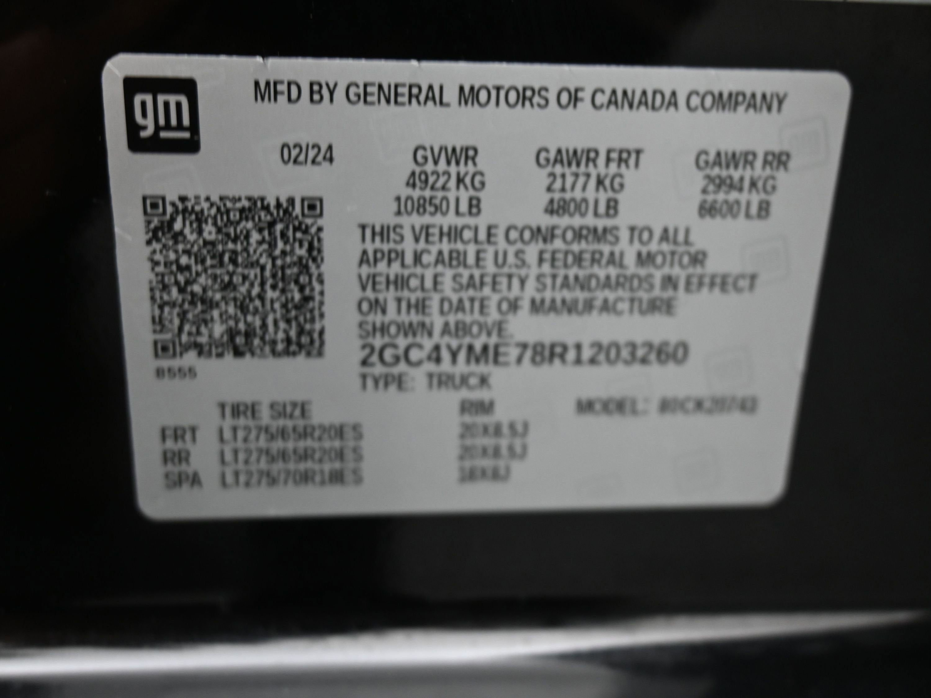- Tires, LT275/65R20 all-terrain, blackwall