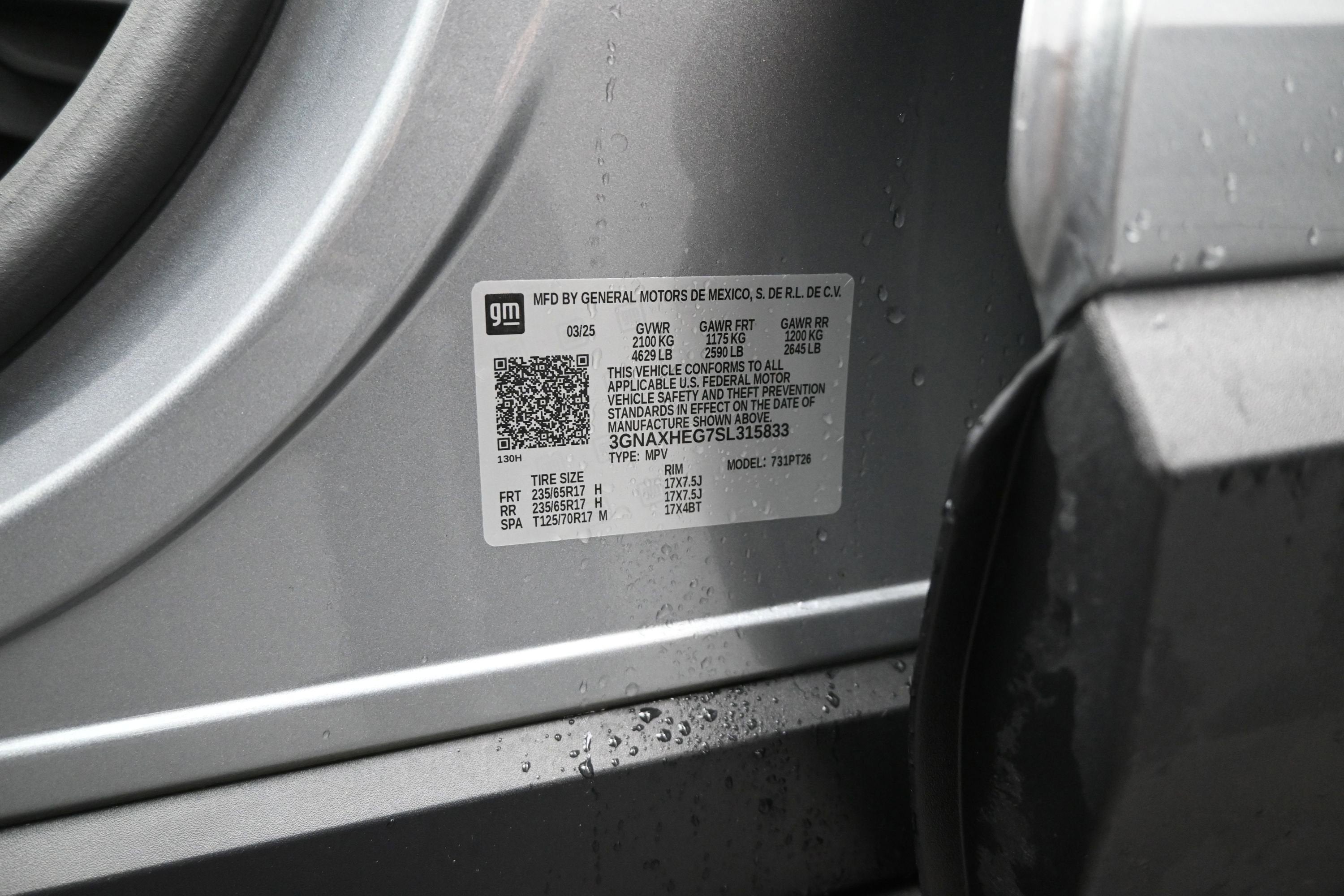 LICENSE PLATE FRONT MOUNTING PACKAGE , WHEELS, 17" (43.2 CM) GRAZEN METALLIC MACHINED-FACE ALUMINUM, TRANSMISSION, CONTINUOUSLY VARIABLE (CVT), TIRES, 235/65R17, ALL-SEASON BLACKWALL, STERLING GRAY METALLIC, SEATS, FRONT BUCKET, LT PREFERRED EQUIPMENT GROUP, ENGINE, 1.5L TURBO DOHC 4-CYLINDER, SIDI, VVT, BLACK, CLOTH SEAT TRIM, AXLE, 5.81 FINAL DRIVE RATIO.